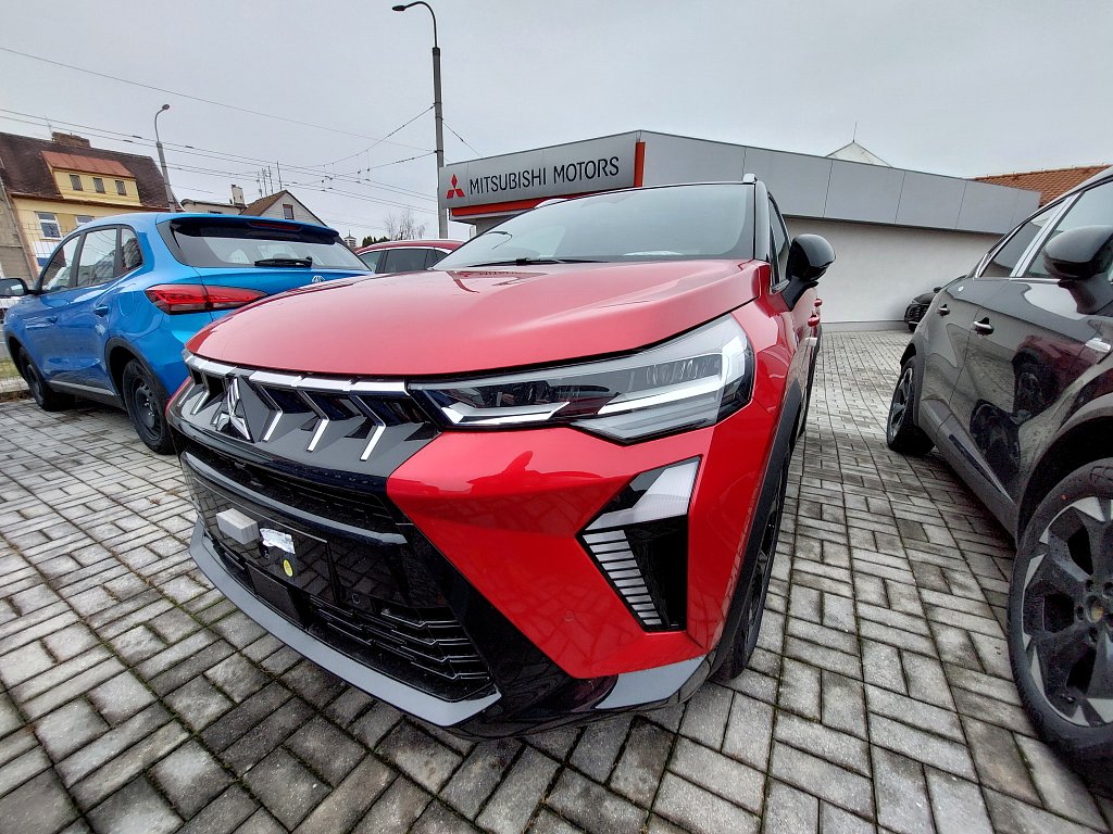 6 reproduktorů, Nabíjecí vstup USB-C v zadní části středové konzoly (x2), Ovládání audiosystému pod volantem, Plně digitální přístrojový panel se 7" TFT displejem, Automatické aktualizace audiosystému, Komunikace s vozidlem a ovládání některých jeho funkcí prostřednictvím mobilní aplikace My Mitsubishi, Bezdrátové nabíjení mobilního telefonu, Tlačítko pro nouzové přivolání pomoci (E-Call), Datový a nabíjecí vstup USB-C na předním panelu (x2), Audiosystém 10,4", podpora bezdrátového Android Auto™ a CarPlay®, Bluetooth®, autorádio AM/FM/DAB (SDA), Aktivní systém pro nouzové udržení v jízdním pruhu (ELKA), Asistent rozjezdu do kopce (HSA), Výškově nastavitelné horní úchyty bezpečnostních pásů na předních sedadlech (x2), Systém sledování dopravní situace za vozidlem při couvání (RCTA), Asistent pro bezpečné opuštění vozidla, 3bodový bezpečnostní pás ELR na zadních sedadlech (x3) s předpínačem a omezovačem zátěže (x2), Nouzový brzdový asistent (EBA), Systém sledování mrtvého úhlu (BSW), Systém rozpoznávání dopravních značek upravujících rychlost (TSR) s inteligentním asistentem pro dodržení povolené rychlosti, Aktivní systém udržení v jízdním pruhu (LKA), Dětská pojistka zámků zadních dveří, Systém signalizace nouzového brzdění (ESS), Elektronický imobilizér, Čelní airbagy řidiče a spolujezdce (x2), spínač deaktivace airbagu spolujezdce, Systém kontroly tlaku v pneumatikách (TPMS), Antiblokovací brzdový systém (ABS), Boční airbagy řidiče a spolujezdce (x2), hlavové (okenní) airbagy vpředu a vzadu (x2), Systém pro analýzu pozornosti řidiče, Elektronický systém rozdělení brzdného účinku (EBD), Systém předcházení a zmírňování následků čelního nárazu s detekcí chodců a cyklistů (FCM), Systém monitorování a podpory udržování jízdního pruhu (LDW), Systém aktivního řízení stability (ASC), Multikolizní brzda, Sada pro nouzovou opravu pneumatik, Systém elektronického řízení trakce (TCL), 3bodový bezpečnostní pás ELR na předních sedadlech s předpínačem a omezovačem zátěže (x2), Technologie pohonu mild-hybrid 12V, Zatmavená zadní boční skla a zatmavené zadní sklo, Plastové lemy blatníků (černé), Zadní střešní spoiler, Leskle černá mřížka chladiče s chromovými akcenty, Parkovací kamera vzadu s projekcí na displeji audiosystému, Kliky dveří v barvě karoserie, Parkovací senzory vpředu, vzadu a na boční straně (x12), Spodní kryt předního nárazníku leskle černý, Disky kol z lehkých slitin 18" černostříbrné + pneumatiky 215/55 R18, Ochranné spodní lemy dveří černé, Střešní anténa typu Shark fin, Elektricky ovládaná, vyhřívaná a sklopná vnější zpětná zrcátka v leskle černé barvě s ukazateli směru, Tónovaná skla, přední sklo bezpečnostní laminované, zadní pevnostní temperované, Spodní kryt zadního nárazníku leskle černý, Lemy bočních oken stříbrné / chromované, Prostřední boční dveřní sloupek v černé barvě, Přední a zadní nárazník v barvě karoserie, Tmavěšedé čalounění stropu, Ambientní podsvícení interiéru, Kryt zavazadlového prostoru, Palubní deska s měkkým obložením, Držáky nápojů vpředu ve středové konzole (x2), Upozornění na dodržování bezpečného odstupu, Podélné střešní ližiny stříbrné, Posuvná středová loketní opěrka vpředu s úložným prostorem, Vnitřní zpětné zrcátko s automatickým stmíváním, Chromované vnitřní kliky dveří, Osvětlená odkládací schránka na straně spolujezdce, Funkce dvojitého dna v zavazadlovém prostoru, Osvětlení zavazadlového prostoru, Leskle černé dekory palubní desky, Syntetickou kůží obšitý 3ramenný multifunkční volant, LED osvětlení přední části interiéru, LED osvětlení zadní části interiéru, Vyvýšená přední konzola, Přihrádky s držáky nápojů ve výplních předních a zadních dveří, Sluneční clona u řidiče a spolujezdce s LED osvětleným kosmetickým zrcátkem a držákem lístků, Čerrné přední sloupky, Systém automatického zastavení a nastartování motoru (AS&G), Centrální zamykání dveří s dálkovým ovládáním a dvěma ovladači, Inteligentní systém bezklíčového ovládání centrálního zamykání s tlačítkem START/STOP, Tempomat s ovládáním na volantu, Výškově a podélně nastavitelný volant, Elektronický zámek pátých dveří s dotykovým ovládáním, Komfortní funkce ostřikovače předního skla, Omezovač rychlosti s ovládáním na volantu, Elektrická parkovací brzda (EPB) s funkcí Auto Hold, Vyhřívaný volant, Možnost vlastního nastavení jízdních režimů (My Sense), Palubní počítač, ukazatel vnější teploty, Výdechy ventilace pro zadní cestující (pod předními sedadly a v zadní části středového tunelu), Elektrické ovládání předních a zadních oken s funkcí AUTO a ochranou proti přivření, Dešťový senzor, Automatická klimatizace s pylovým filtrem a filtrem s aktivním uhlím, Tlačítko ECO (asistent pro hospodárnou jízdu), Elektrická zásuvka 12V (v přední části středové konzoly) (x1), Elektrická zásuvka 12V (v zadní části středového tunelu) (x1), Výškově nastavitelné sedadlo řidiče, Výškově nastavitelné opěrky hlavy na předních sedadlech (x2), Výškově nastavitelné opěrky hlavy na zadních sedadlech (x3), Kapsy na zadní straně opěradla řidiče a spolujezdce, Výškově nastavitelné sedadlo spolujezdce, Ukotvení dětské bezpečnostní sedačky ISOFIX (x1 na místě spolujezdce, x2 na zadních sedadlech), Látkové čalounění sedadel černé / šedé, Vyhřívaná přední sedadla (2 stupně teploty), Sedadla ve druhé řadě dělená v poměru 60:40, Posuvná lavice zadního sedadla (160 mm), Komfortní funkce světel "Coming ho